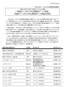 また今回の更新申請(認証期間3年)によって、9施設が認証を更新しました。今回の認証を含め、認証件数は117件となりました。