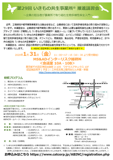第29回いきもの共生事業所®推進講習会の開催が決定いたしました。