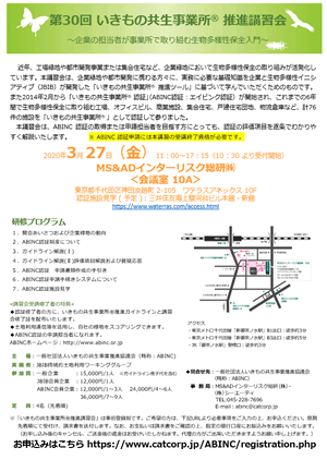 第30回いきもの共生事業所®推進講習会の開催が決定いたしました。 受講をご希望される方は、下記URLよりお申込みください。